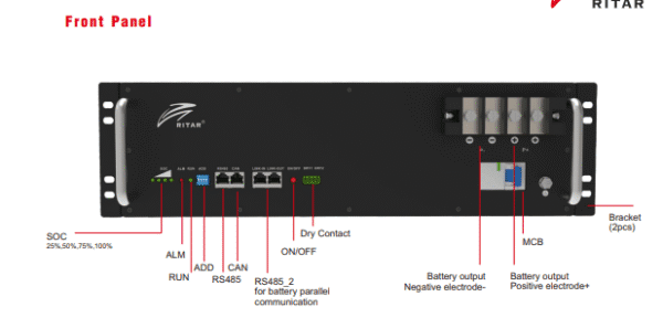 The Ritar 48V / 51.2V Lithium Battery is a high-performance solar storage battery built on safe and reliable LiFePO₄ chemistry. Designed for home energy storage systems, telecom backup, and industrial power needs, this battery offers flexibility with both 48V and 51.2V system compatibility.