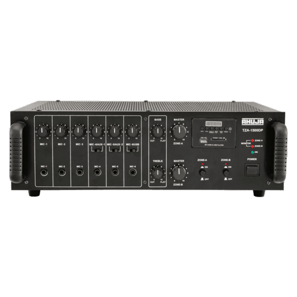 - TZA-1500DP is ideal for medium sized installations such as in places of worship where two separate groups of speakers are needed to be connected.